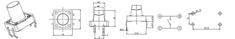 密封性輕觸開關(guān) | RTR-12 | 12VDC | 50mA | 4±1 N | 0.5±0.3mm | ≥100,000 CYCLES | 立即申請 | 下載 |