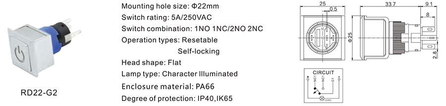 22MM金屬開關(guān)RD22-G2