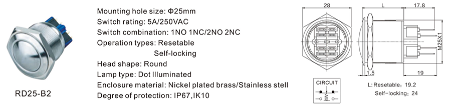 25MM金屬開關RD25-B2
