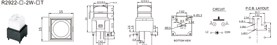 帶燈按鈕開關(guān) | R292 | 12VDC | 100mA | 2±1 N | 4.5±0.2mm | ≥100,000 CYCLES | 立即申請 | 下載 |