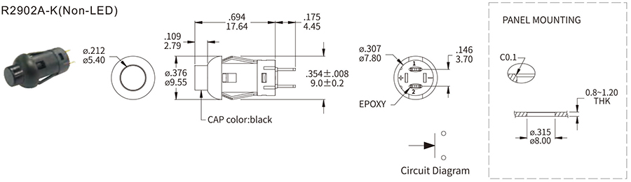 帶燈按鈕開關(guān) | R2909 | 30VDC | 10mA | 2±1 N | / | ≥100,000 CYCLES | 立即申請(qǐng) | 下載 |