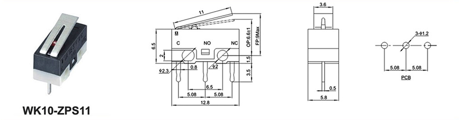 微動(dòng)開關(guān) | WK10-ZPS18 | 250VDC/125VDC/30VDC | 3(0.5)A | / | / | 1,000,000 cycles | 立即申請(qǐng) | 下載 |