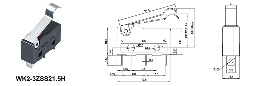 微動開關(guān) | WK2-3ZSS21.5H | 250VDC | 5(2)A | / | / | 1,000,000 cycles | 立即申請 | 下載 |