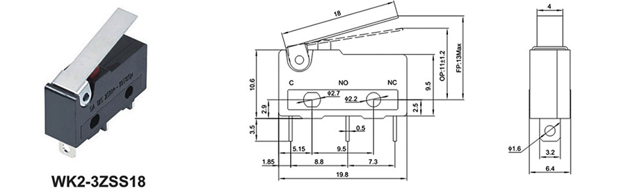 微動開關 | WK2-3ZSS18.3U | 250VDC | 5(2)A | / | / | 1,000,000 cycles | 立即申請 | 下載 |