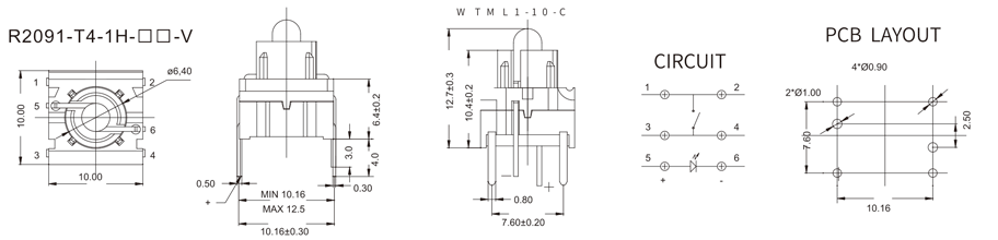 帶燈輕觸開關(guān)R509K 帶燈輕觸開關(guān) R509K 35VDC 10mA 2±1 N 1.0mm ≥100,000 CYCLES 立即申請 下載
