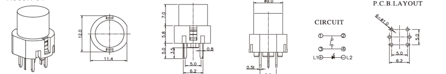 帶燈輕觸開(kāi)關(guān) | R591B | 12VDC | 50mA | 2±1 N | 0.25±0.1mm | ≥100,000 CYCLES | 立即申請(qǐng) | 下載 |