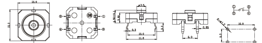 輕觸開關 | RTR-85 | 12VDC | 50mA | 4±1 N | 0.8±0.2mm | ≥100,000 CYCLES | 立即申請 | 下載 |